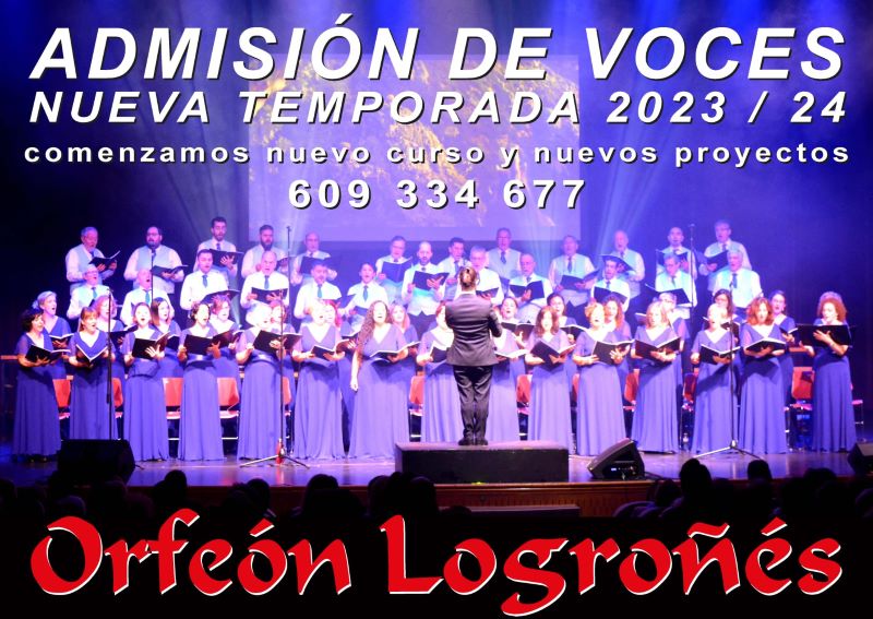 ¿Te gusta cantar? ¿Quieres formar parte de una asociación musical vibrante y emocionante? ¡Únete al Orfeón Logroñés! A partir de septiembre incorporamos nuevas voces y que mejor momento que el actual en el que estamos preparando los eventos conmemorativos de nuestro 50 aniversario. Si te apasiona la música y quieres formar parte de un grupo dinámico y acogedor, ¡no dudes en contactarnos! No necesitas tener experiencia previa, solo ganas de aprender y disfrutar de la música. Te ofrecemos un ambiente acogedor, una formación musical continua y la posibilidad de participar en proyectos artísticos y culturales.